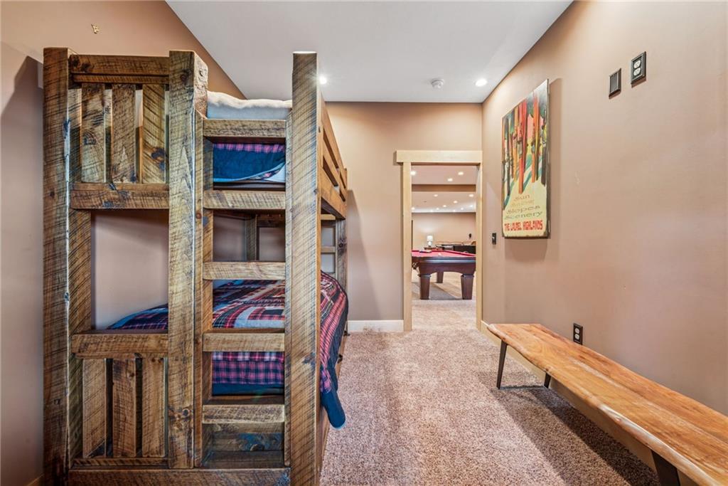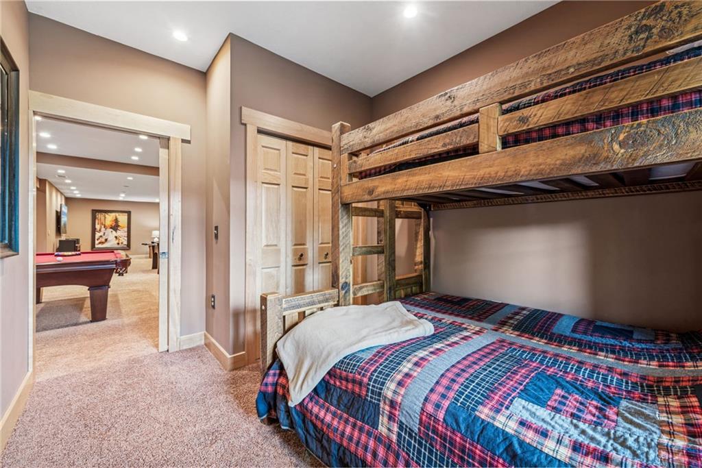 Ski days start at your door and end by the fire in this five bedroom, 3 1/2 bath mountain retreat with ski in/out convenience. An open great room welcomes you with wood tones, tall windows, and an expanded back deck for sunrise coffee. The kitchen anchors the main level so everyone can gather after a day on the slopes. Upstairs, the primary suite is its own escape with a private deck for quiet mornings and a deep breath of mountain air. Two additional bedrooms, a second full bath, and a cozy reading nook complete this level. Downstairs, an enormous game room keeps the fun going with a pool table, tabletop shuffleboard, and foosball. Step outside to your private hot tub. Bedrooms four and five plus the third full bath sit off the game room. Thoughtful touches make hosting simple, with guest spaces and gear storage at the ski entry for goggles, boards, and boots. Whether you are here for ski season, summer hikes, or long weekends by the fire, this home turns every season into a memory.