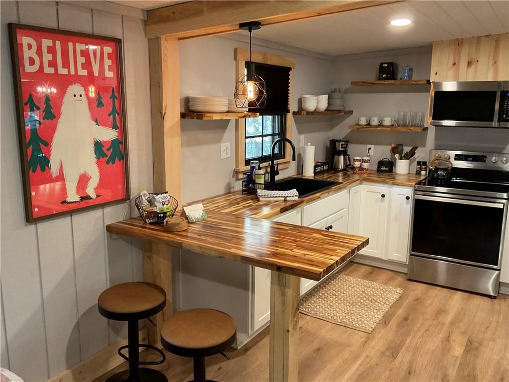 IT’S THAT TIME OF YEAR TO BE THINKING ABOUT ALL OF THE GREAT WINTER ACTIVITIES OFFERED HERE IN THE LAUREL HIGHLANDS…AND NO BETTER TIME TO MOVE FORWARD WITH THAT DREAM OF OWNING A MOUNTAIN HOME! THIS 2 BDRM/1 FULL BATH IS A “STUDS-OUT REMODEL”…NEW PLUMBING, ELECTRICAL WIRING, FURNACE, TANKLESS WATER HEATER, LIGHTING/ FIXTURES, WINDOWS, BATHROOM, METAL ROOF, FLOORING, KITCHEN AND BEAUTIFUL FINISHING TOUCHES THROUGHOUT! ALL OF THIS ON 1.67 WOODED ACRES! THE ORIGINAL STONE FIREPLACE HAS A WOOD STOVE INSERT WHICH COMPLETES THE COZY FEEL OF THIS CABIN! ONLY 5 MILES TO SEVEN SPRINGS MOUNTAIN RESORT AND 7 MILES TO HIDDEN VALLEY WITHOUT THE RESTRICTIONS AND HOA FEES! PLENTY OF LAND FOR ADDING ON IF YOU WANT ADDITIONAL SPACE DOWN THE ROAD! CLOSE TO LAUREL HILL STATE PARK. IMAGINE THE ENJOYMENT OF FISHING, HUNTING, HIKING, BIKING AND SNOWMOBILING! THIS HOME IS BEING OFFERED FURNISHED WITH SOME EXCEPTIONS.