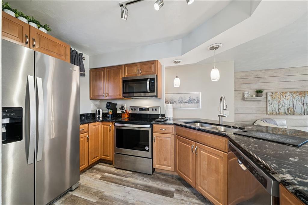 Come up to the Mountains for a Breath of Fresh Air & Check out this Stunner! Completely refreshed Swiss Mountain Condo with White Washed Cedar Walls that give it a Modern twist. Turnkey and Ready to go for the upcoming ski season offering 2 Bedrooms & 2 Full Bathrooms. Step inside to admire all the updates from the flooring, remodeled kitchen with new granite countertops & cabinets plus Stainless Steel Appliances and updated bathrooms. The stylish decor and new light fixtures give off a warm & cozy vibe. Grab the shuttle and head to the lodge to hit the slopes and dinner, come back and snuggle up in front of the wood burning fireplace, why worry about driving home. This ground level condo is easily accessible and conveniently located across from the Swimming Pool & Tennis Courts. The back Patio overlooks the Green Space & Woods perfect for pets and relaxing outdoors. Let the HOA take care of the exterior maintenance while you explore the mountain. The snow is coming, don't wait!