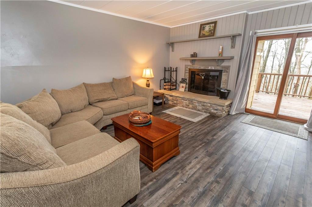 Welcome to 3B1 Mountain Villas! This charming 1-bedroom, 1-bath condo offers a cozy retreat with oak cabinets in the kitchen, a spacious ground floor deck with steps, and stunning views of the ski slopes. Enjoy the convenience of gas heat, central air, and a wood-burning fireplace plus a full sized washer and dryer. Furnishings are included, making move-in a breeze. Plus, residents have access to a refreshing community pool, perfect for summer relaxation. Nestled in a peaceful setting adjacent to the 8th fairway of the Seven Springs golf course, this home offers a perfect blend of comfort and tranquility. Don't miss out on this opportunity for mountain living at its finest!"