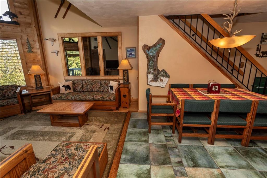 Welcome to this meticulously maintained top-level condo, offering unparalleled views of the picturesque Laurel Highlands. Every detail of this home has been thoughtfully updated to provide ultimate comfort. Along with comfort there is the convenience of a coveted garage that comes with the condo. Step inside and notice the solid wood, ceramic tile and luxury vinyl flooring. The washer and dryer is just three years old, and the entire condo has been freshly painted. The condo also boasts beautiful murals lovingly painted by the owner, adding a unique, personal touch. Amish cabinetry and furnishings enhance the charm of this condo. Additional highlights include two balconies overlooking stunning scenery, and the convenience of the chairlift in your backyard. This condo is not just a home, it's a lifestyle. Homeowners have access to two summer recreation areas and owners lounge. Shuttle service throughout the Resort.