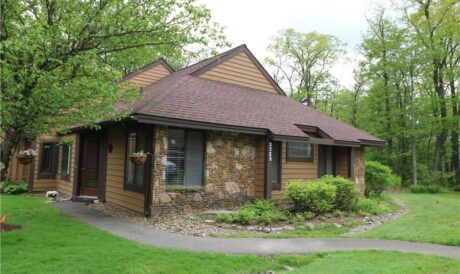 Hidden Valley resort home on a meticulous corner lot directly across from the South Ridge swimming pool and recreation area. Step inside to discover warm hardwood flooring throughout, abundant natural light, and an inviting indoor-outdoor flow to multiple patio spaces. The spacious kitchen features generous counter space, cherry cabinetry, counter seating plus a cozy breakfast nook, and an Electrolux stove for the home chef. Host with style in the sunken living room perfect for holidays and special occasions.